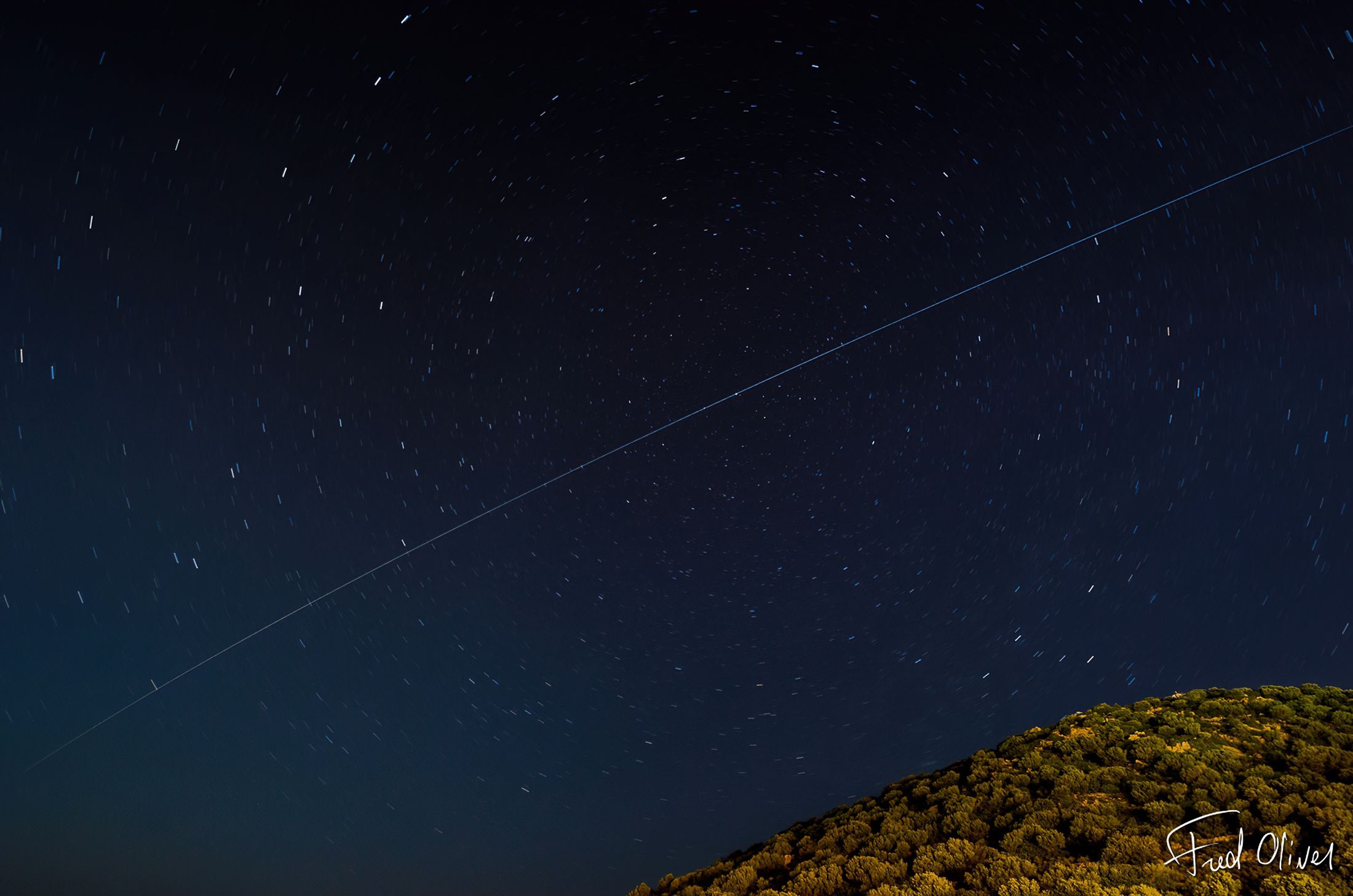 La trace de la Station Spatiale Internationale, passant en plein sur l'étoile polaire, Polaris.
